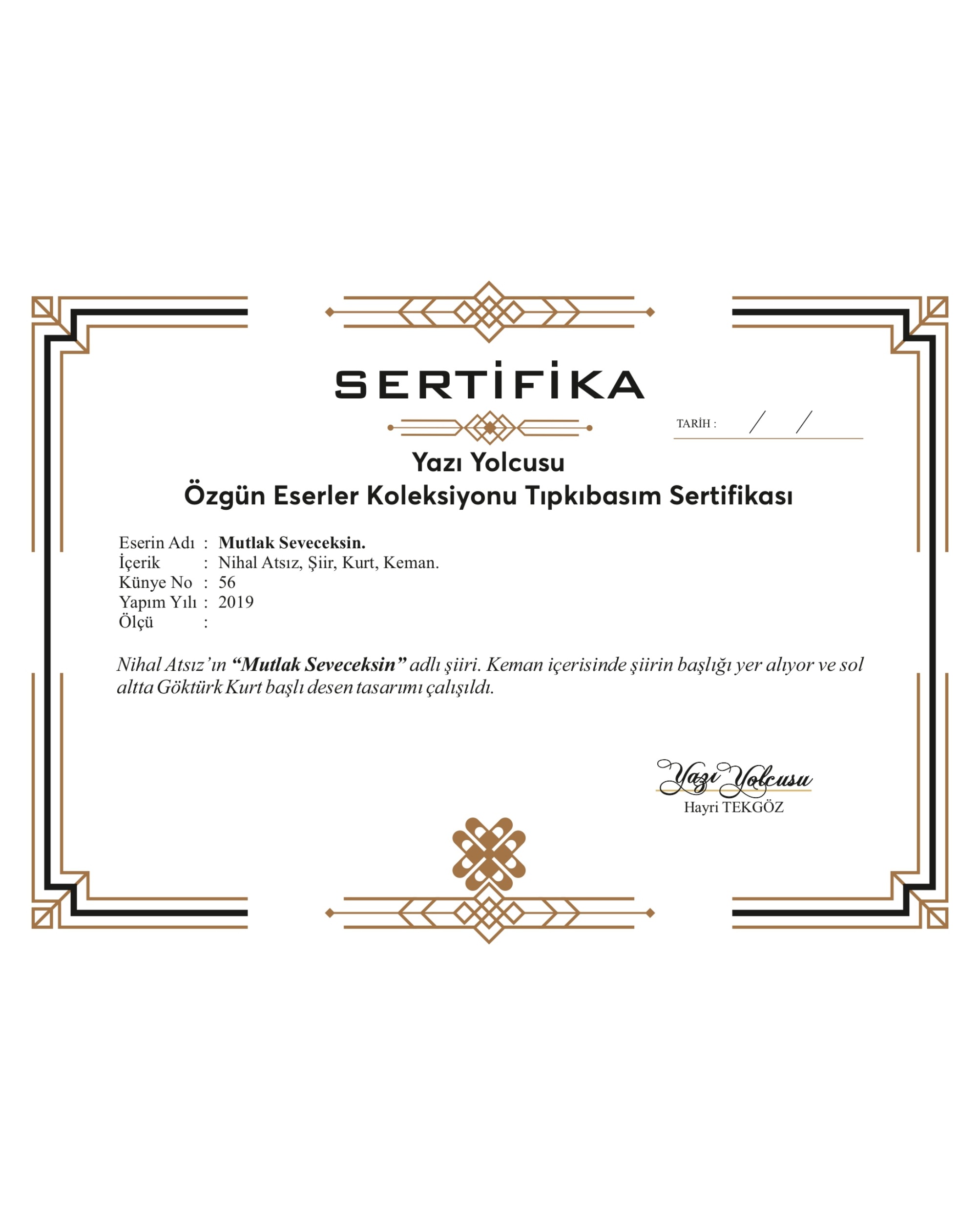 İmzalı ve Sertifikalı.
