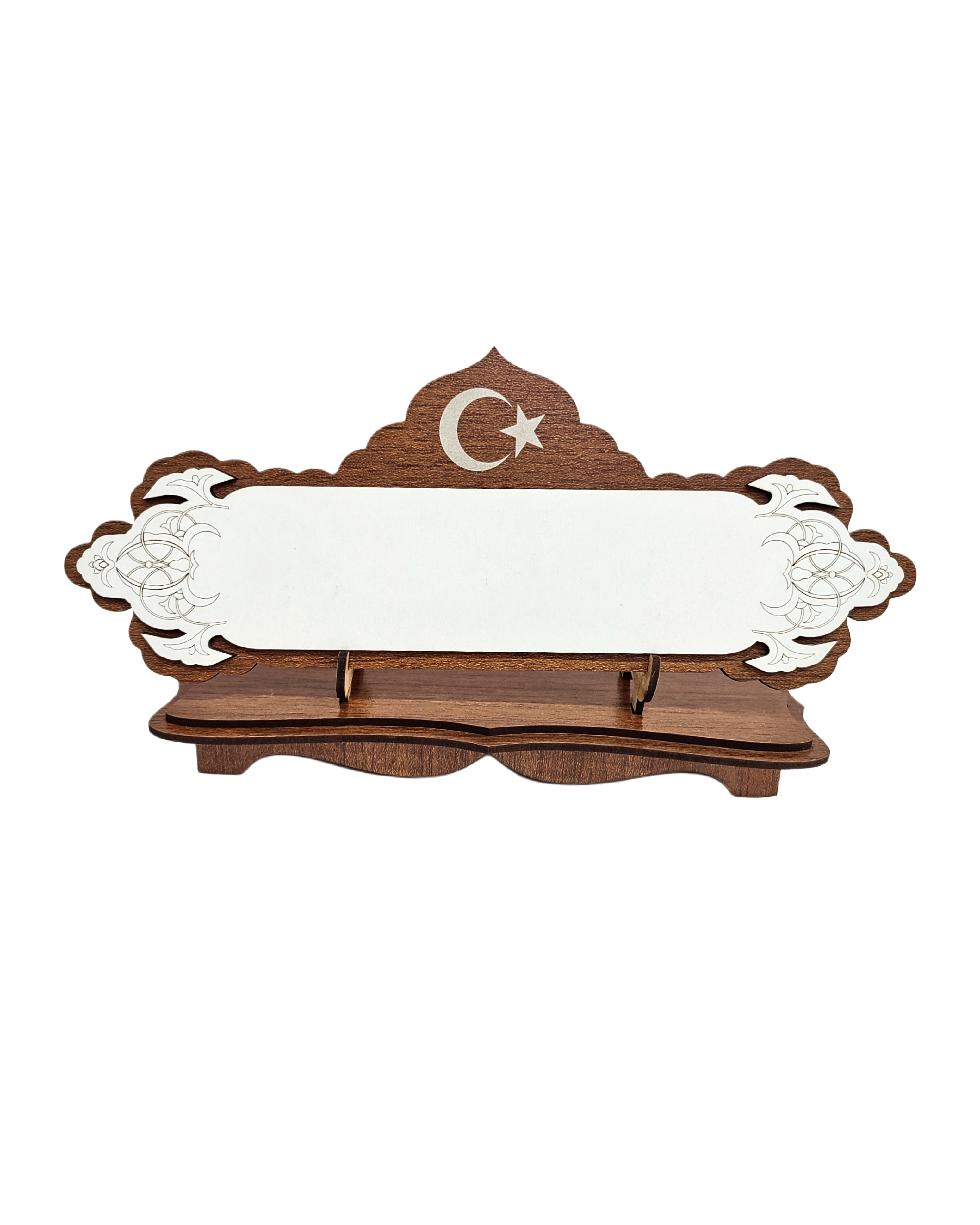 Ay Yıldızlı Ahşap Masa İsimlik 13x28 (M26)