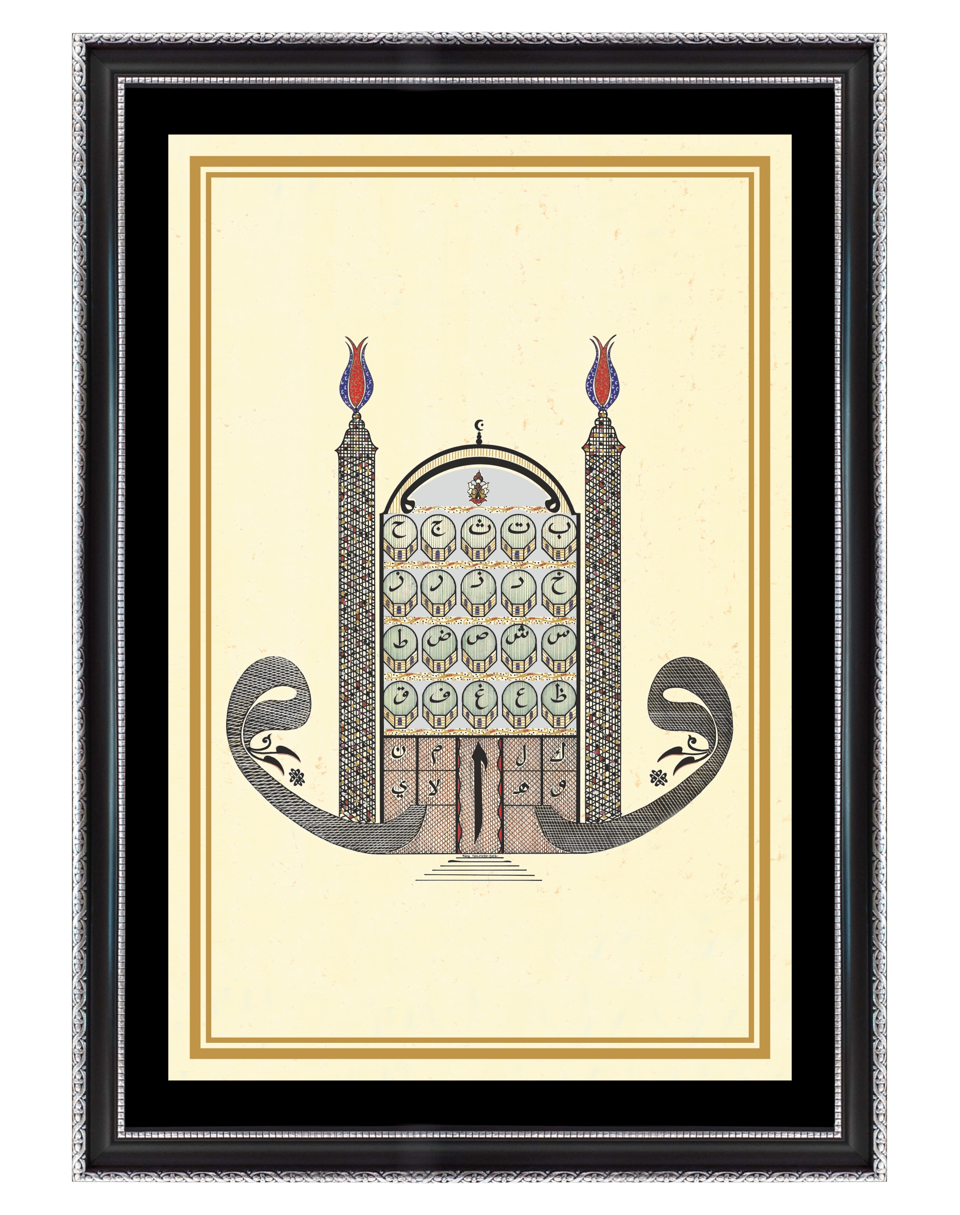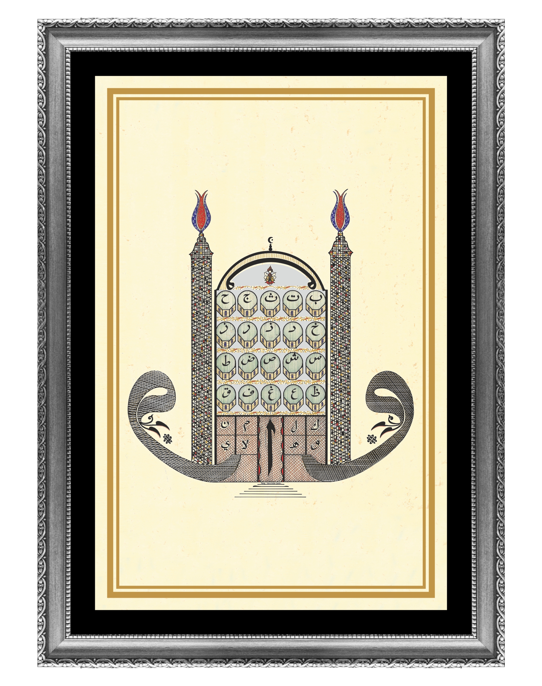 İç ölçü 48x31 cm. Camlı çerçeveli. Yüksek çözünürlükte tıpkıbasım. 2016 yılına ait Yazı Yolcusu özgün eserler koleksiyonundan sertifikalı. Gümüş, sarı ve siyah renk seçenekli çerçeve modelini lütfen belirtiniz. Fiyatlarımıza kargo ücreti ve %20 KDV tutarı dahildir.