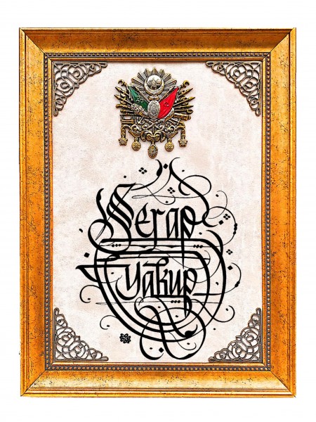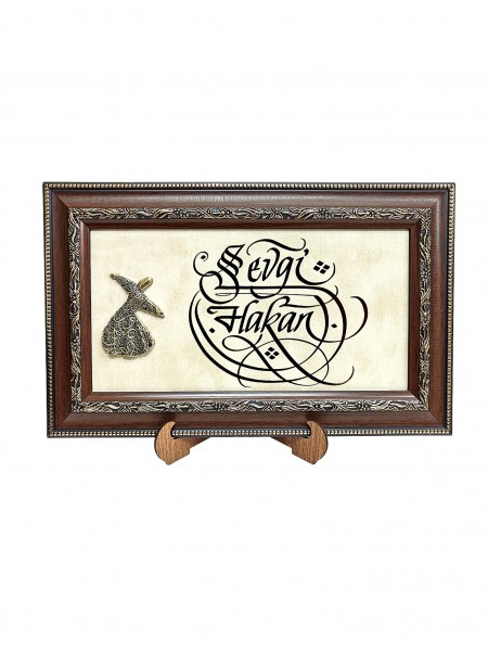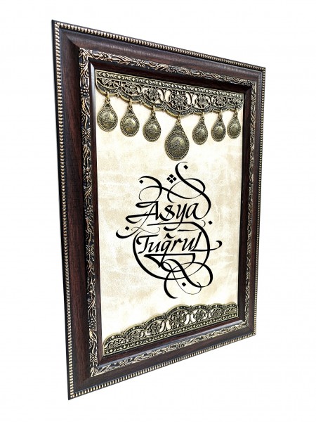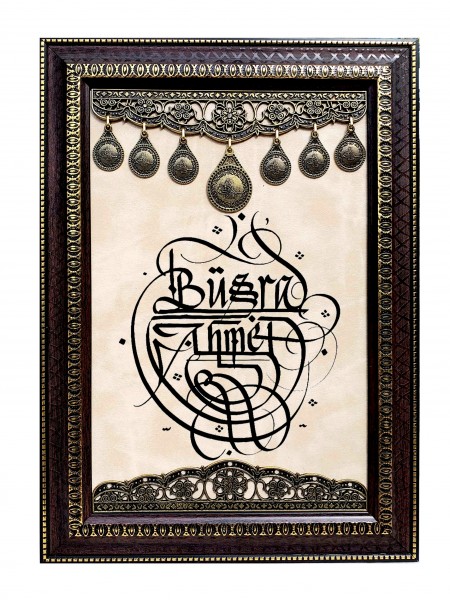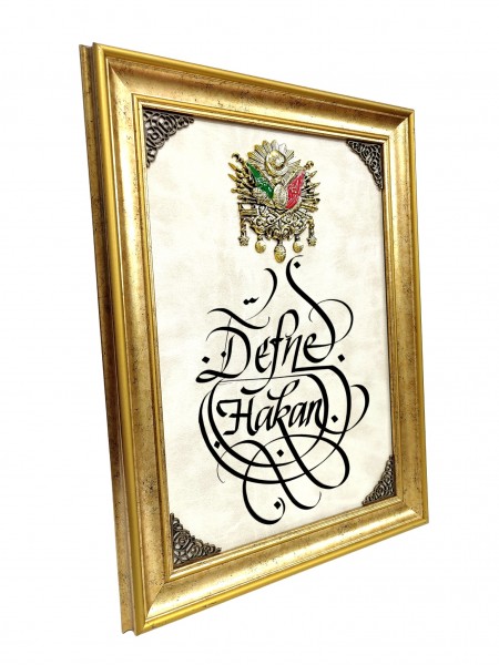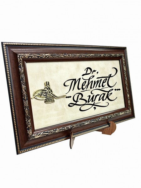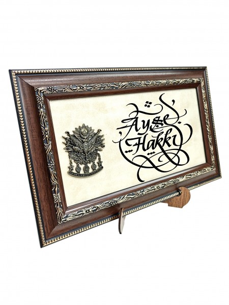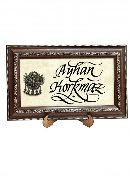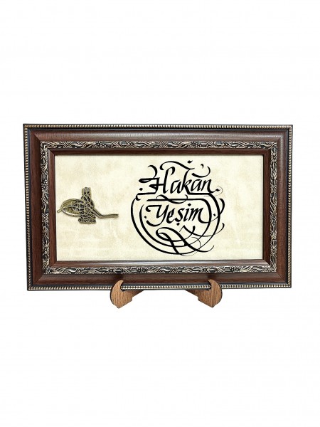 Tuğralı Deri Zeminli Tablo 21x35 (DK59)