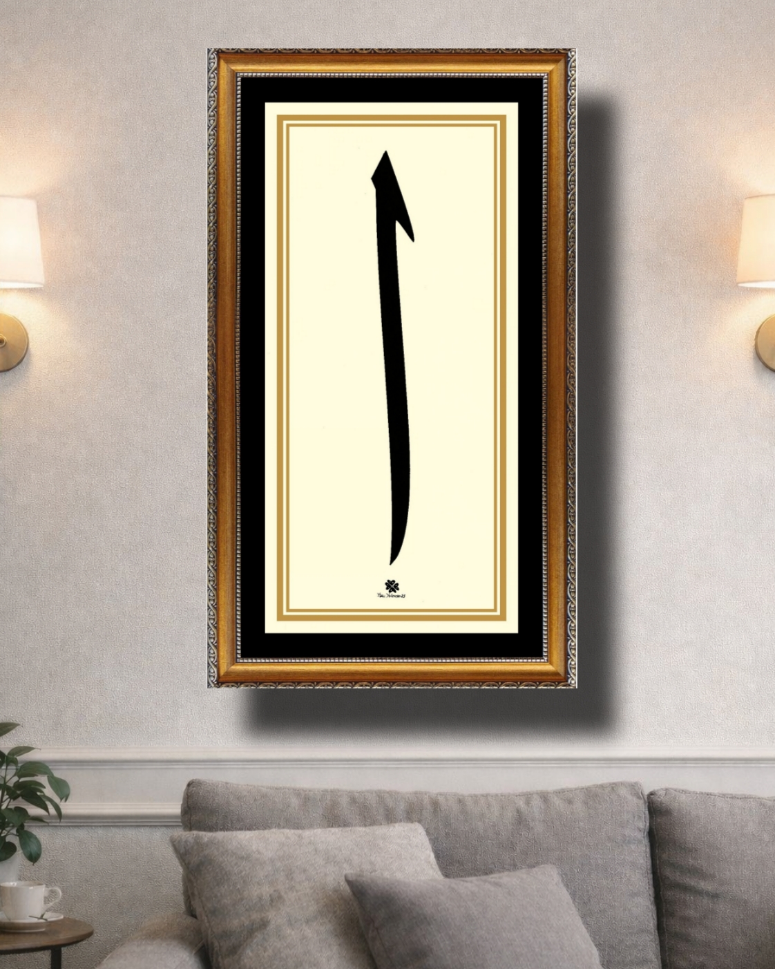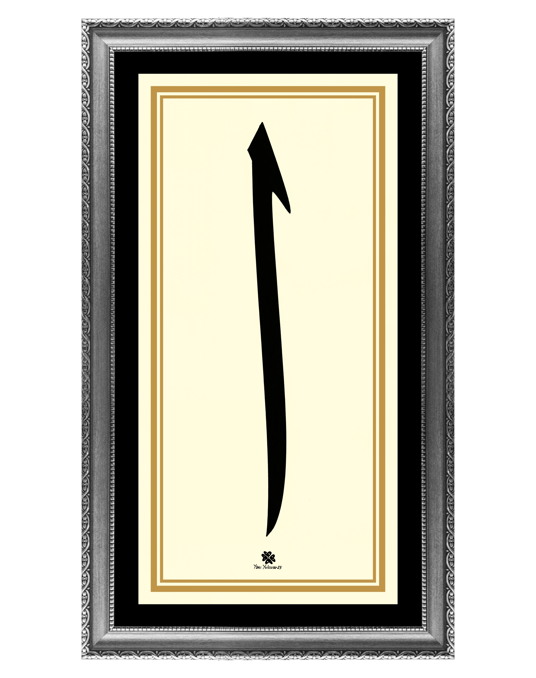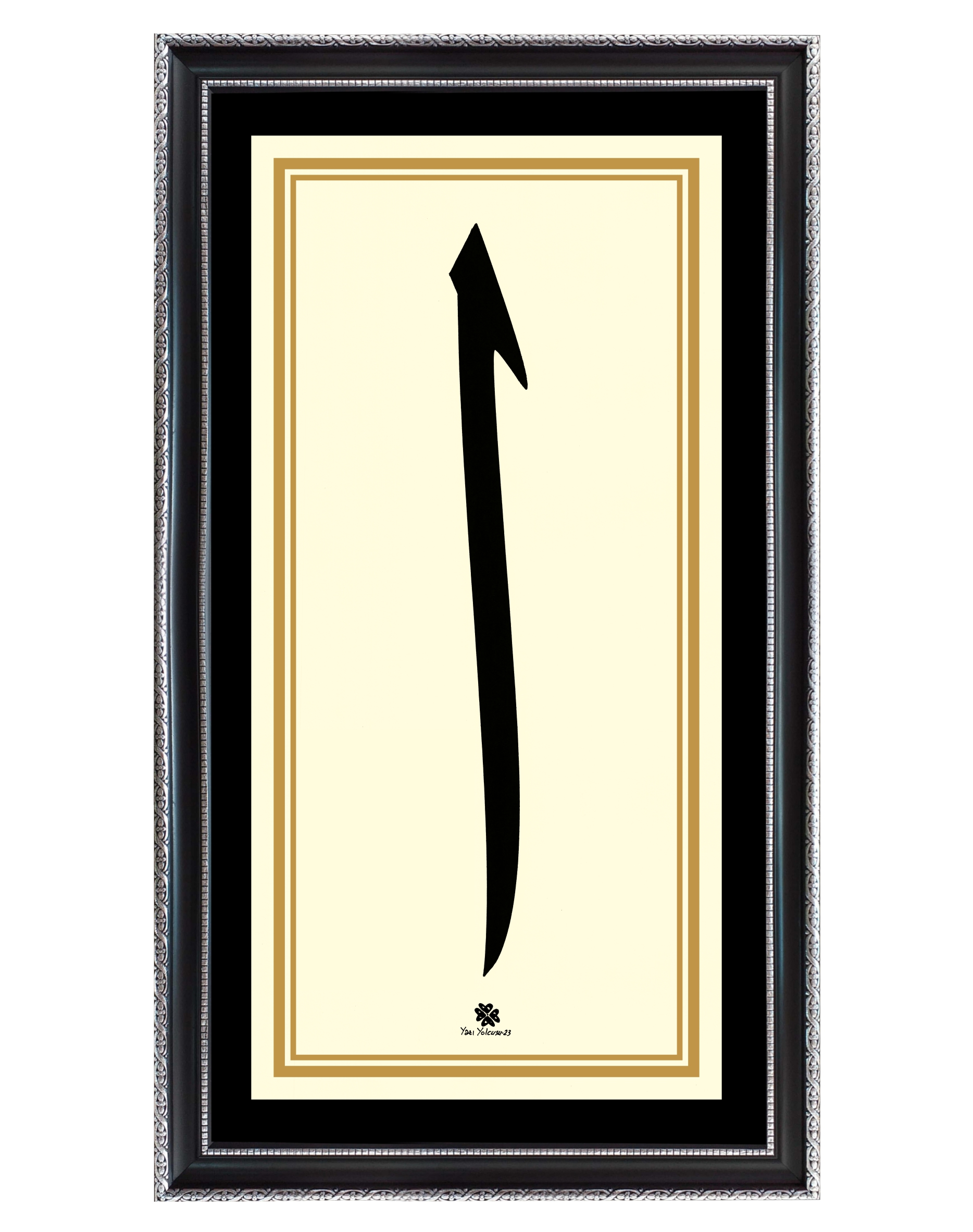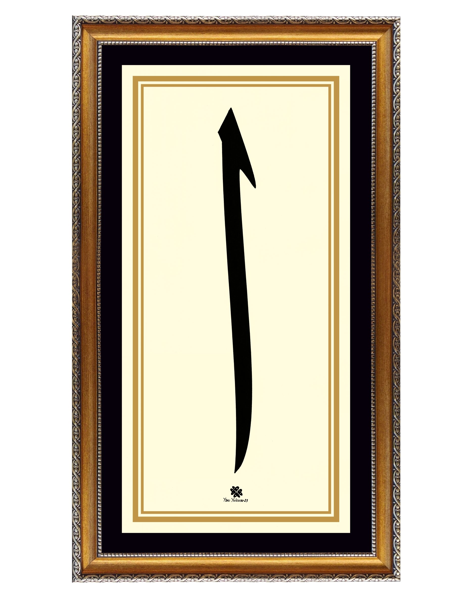 Krem zemin üzerine Arapça Elif harfi.