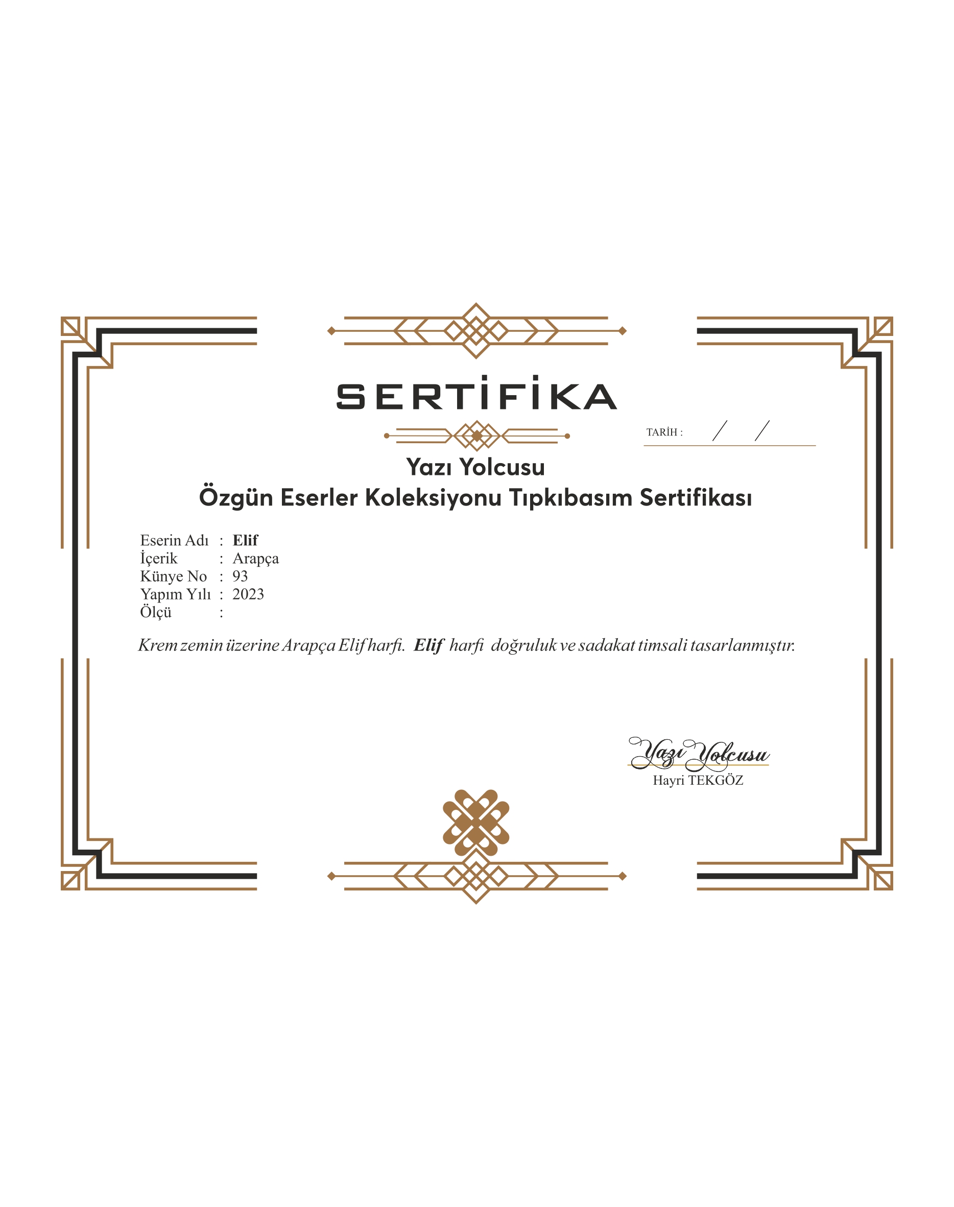İmzalı ve Sertifikalı.