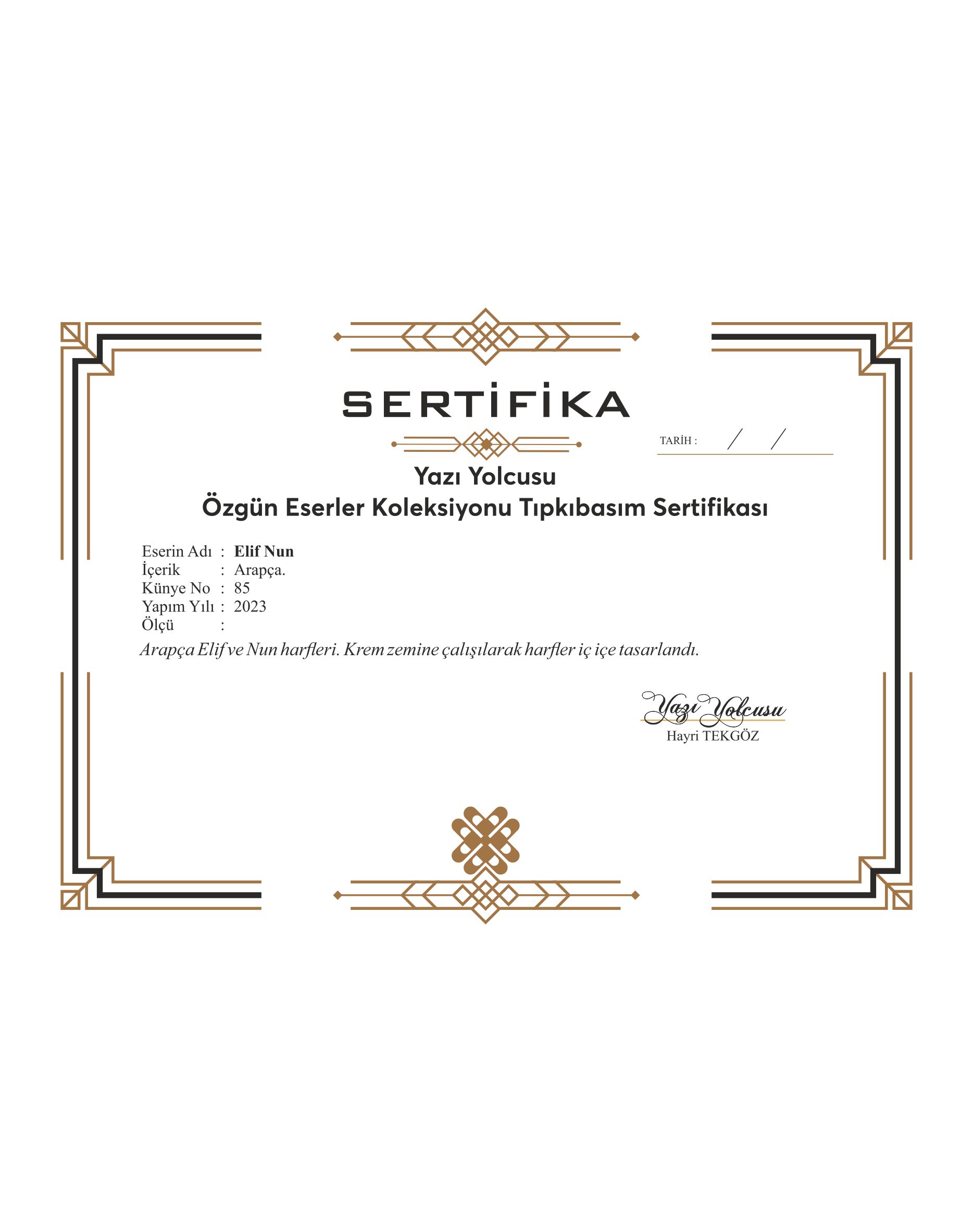 Arapça Elif ve Nun harfleri. Krem zemine çalışılarak harfler iç içe tasarlandı.