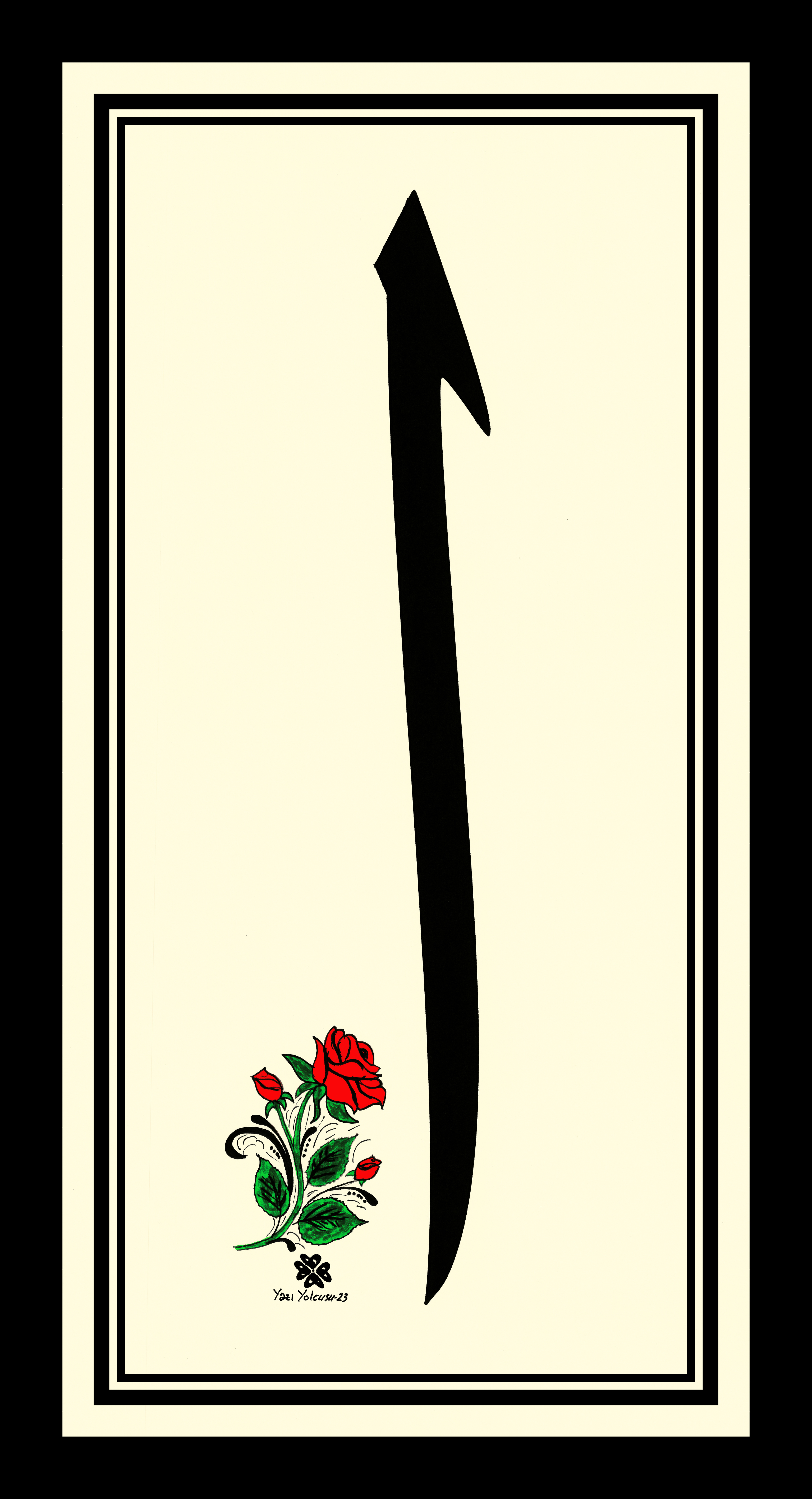 Krem zemin üzerine Arapça “Elif ve Gül” tasarımı.