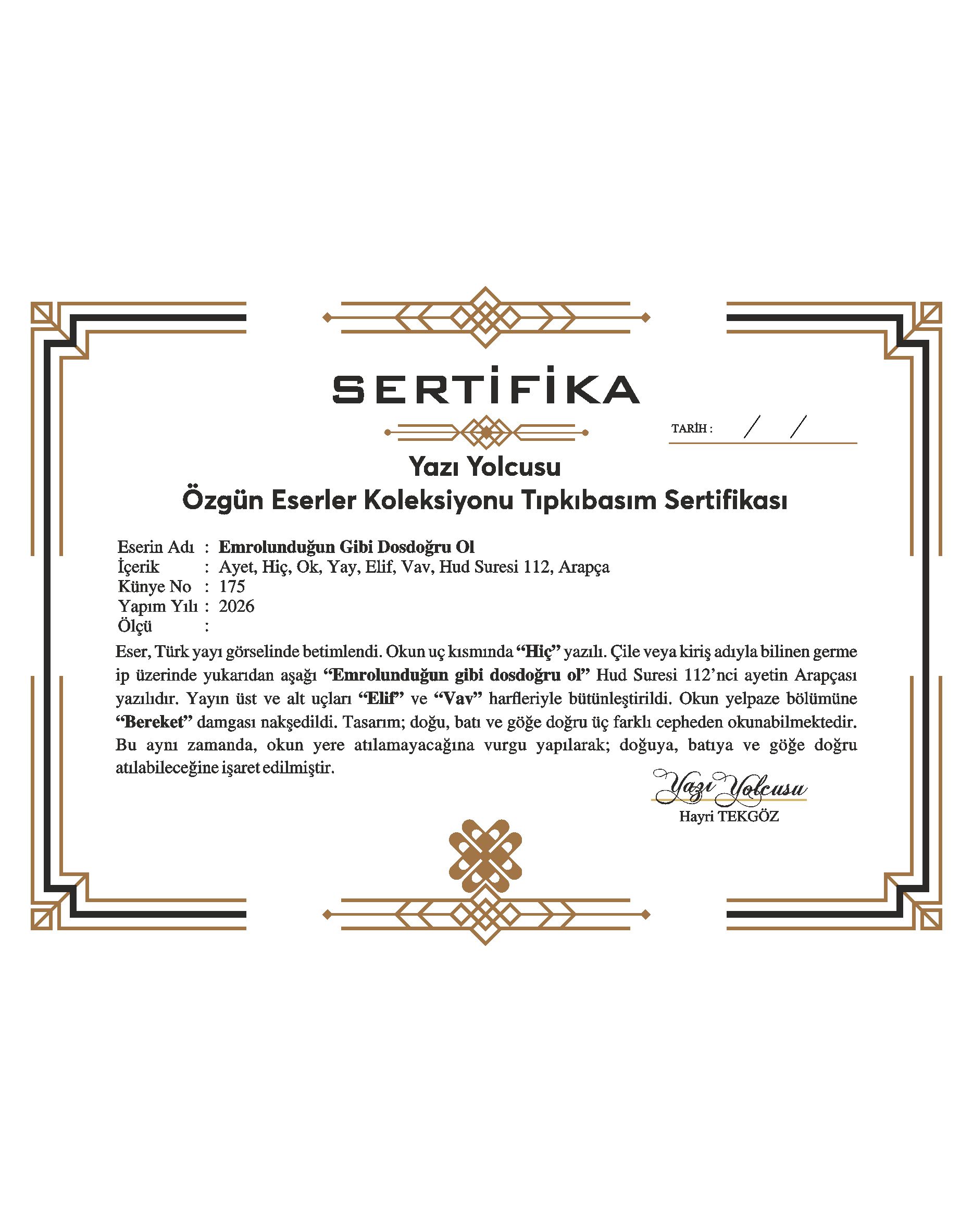İmzalı ve Sertifikalı.