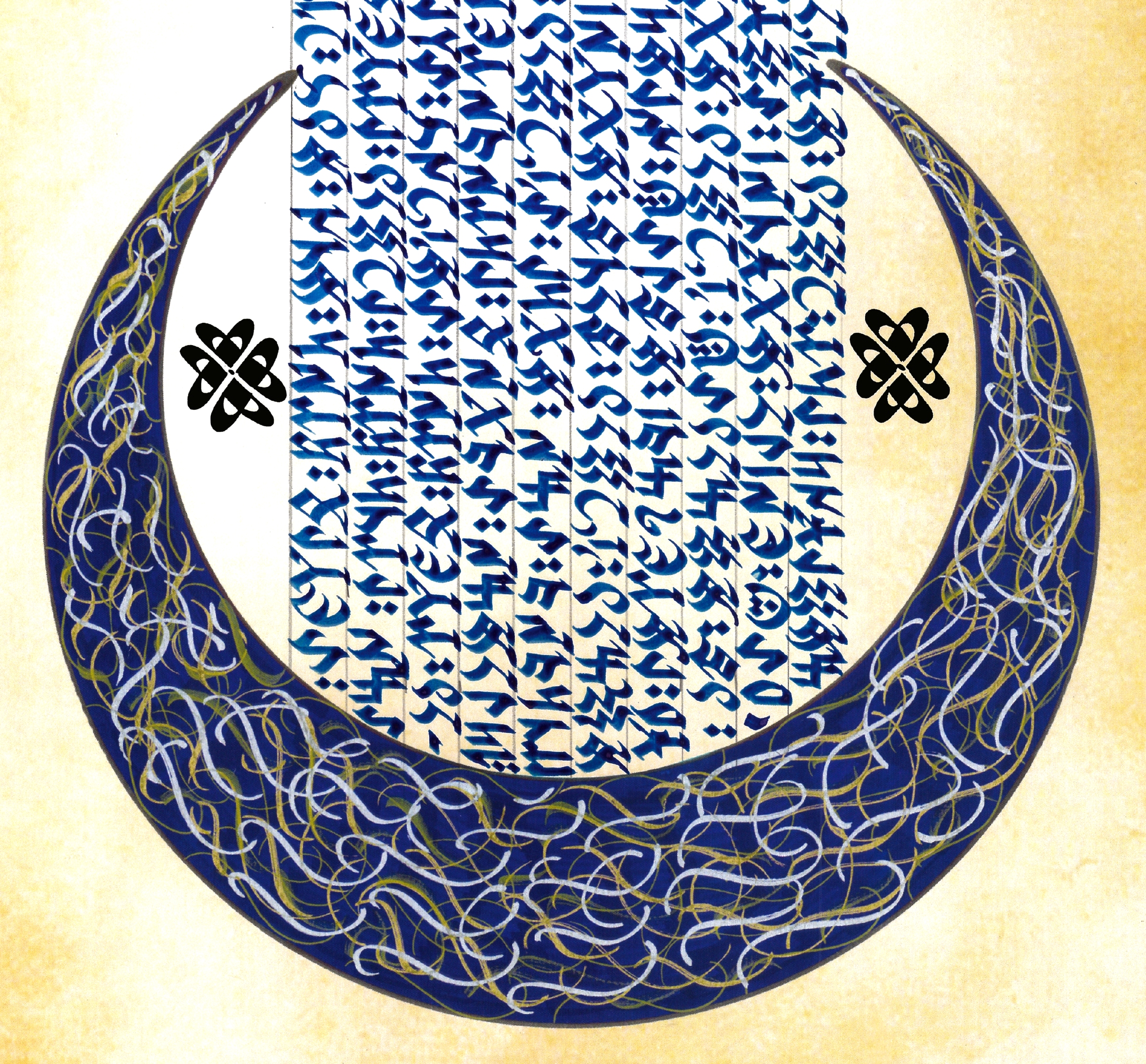 Ay Yıldız görselinde, Orhun anıtlarından Bilge Kağan’a ait bir bölüm Göktürkçe yazılarak tasarlandı.