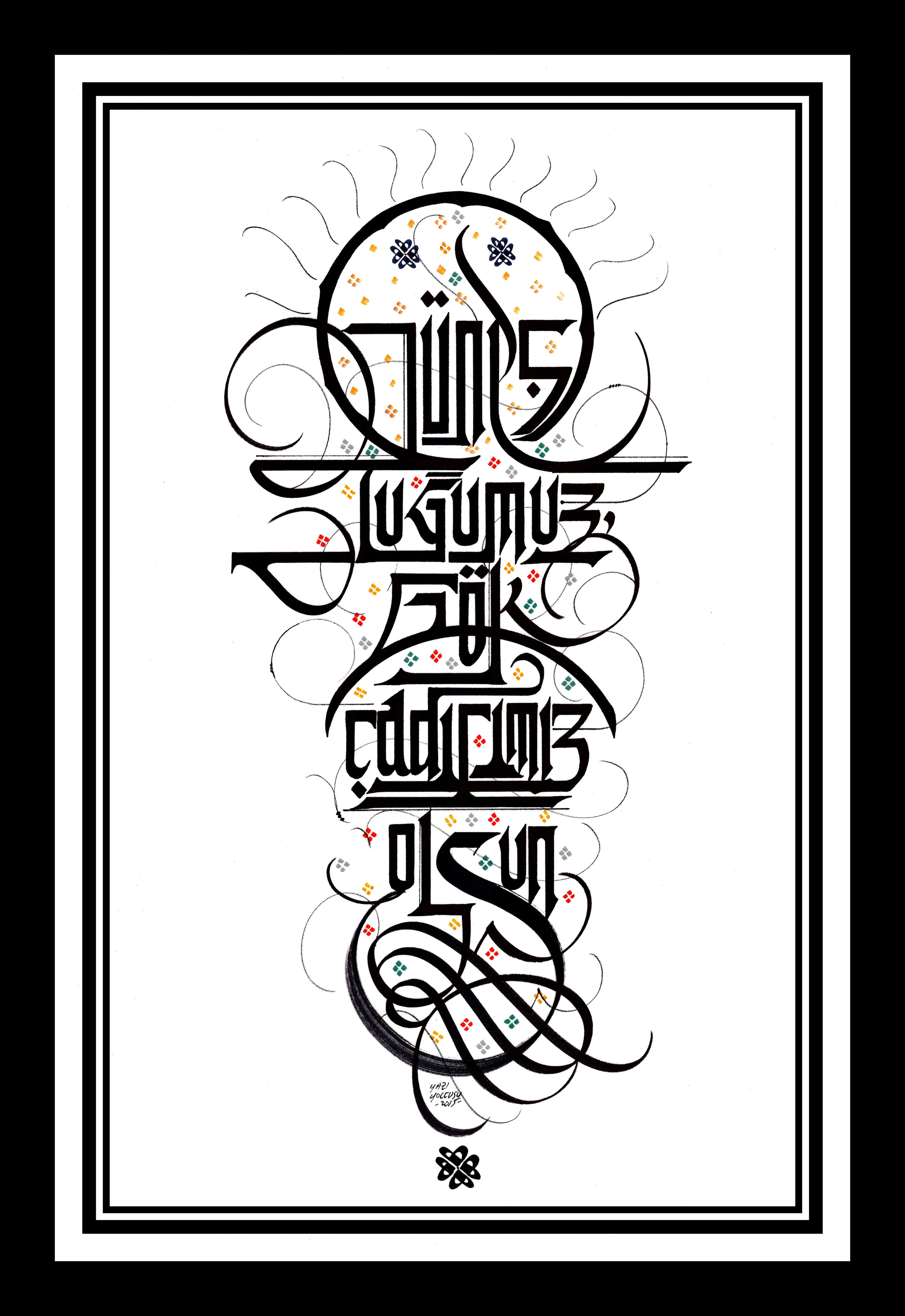 Oğuz Kağan Destanından “Güneş Tuğumuz Gök Çadırımız Olsun”. Üstte güneş görseli ve ortada yay biçimiyle gök vurgusu yapılarak tasarlandı.