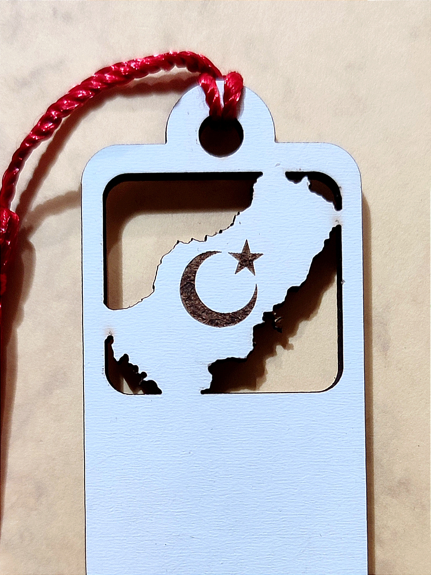 Türkiye haritası ve Ay Yıldız desenli, beyaz ahşap kitap ayracı. Bir paket içerisinde 5 adet bulunmaktadır. Her ayraca aynı kelime veya farklı isimler yazılabilir. 17 cm uzunluğunda, 3.5 cm eninde, püskül ipli. Ürün üzerine yazılacak isimleri lütfen açık biçimde belirtiniz.
