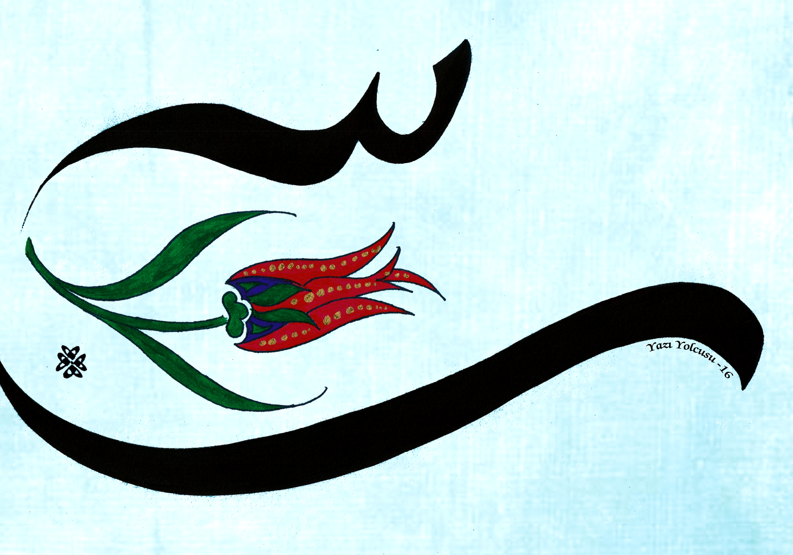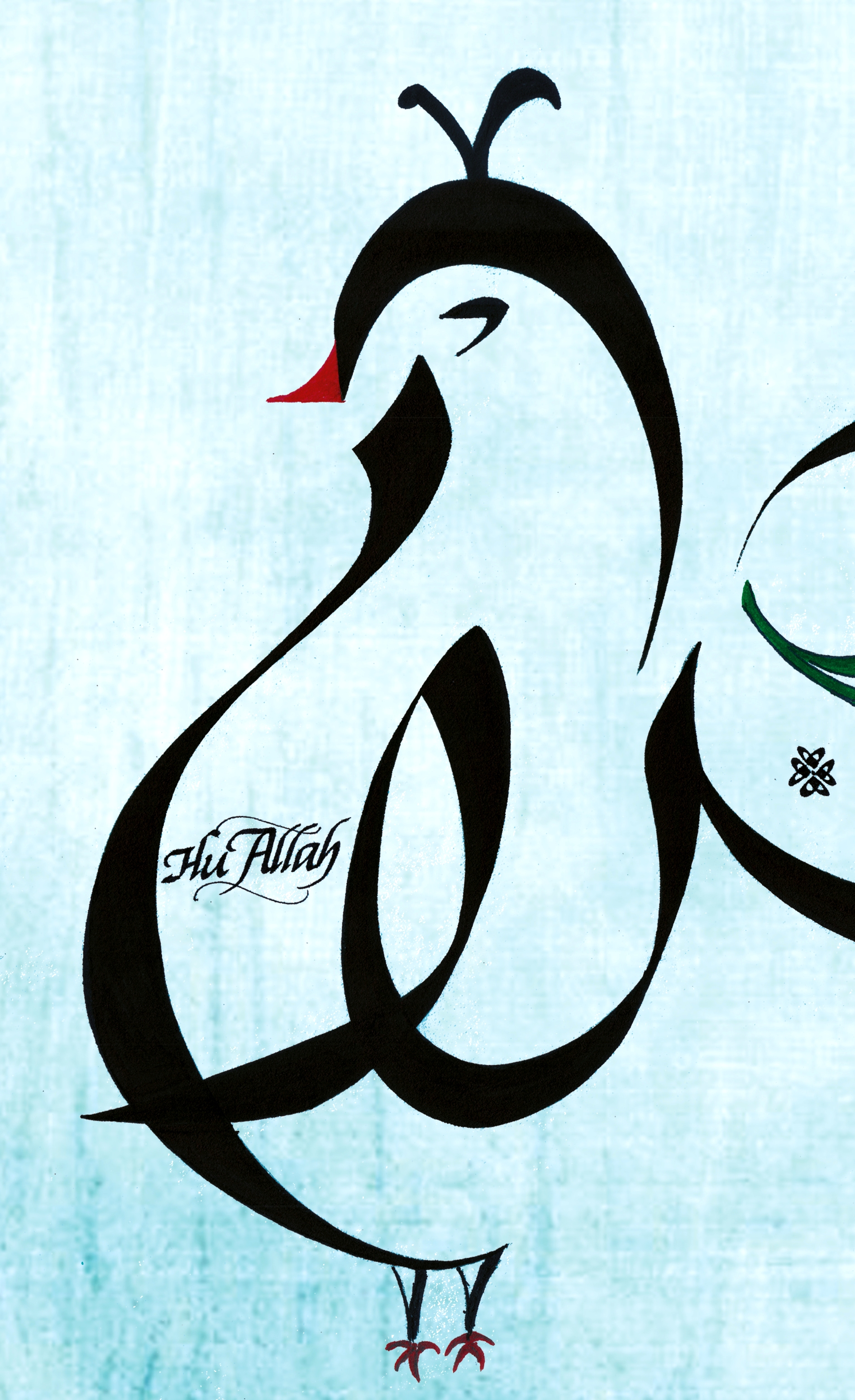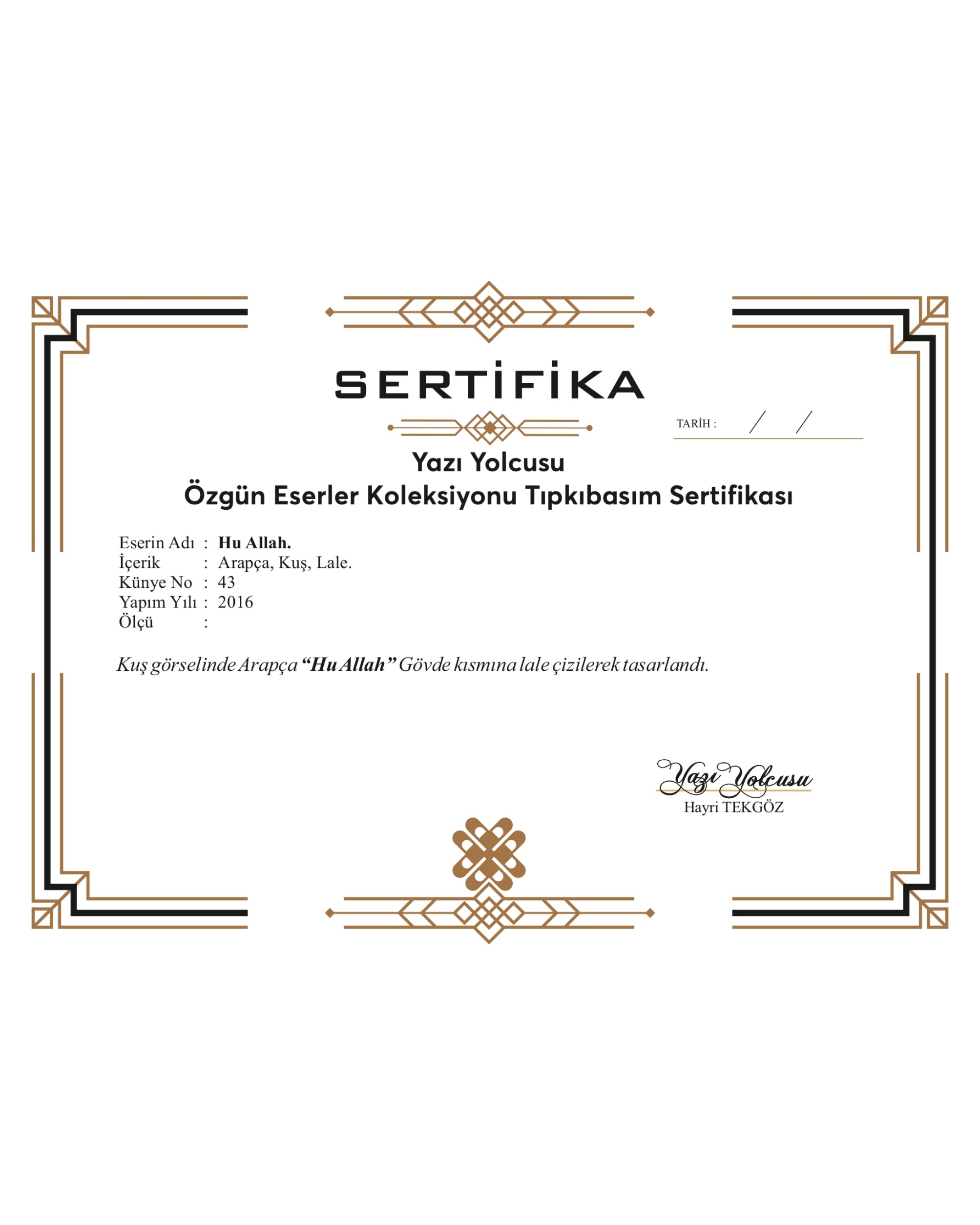 Kuş görselinde Arapça “Hu Allah”. Gövde kısmına lale çizilerek tasarlandı.