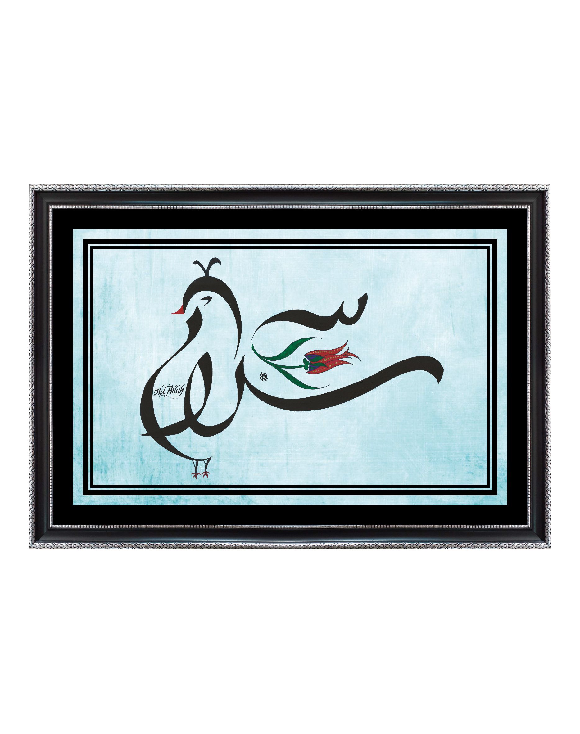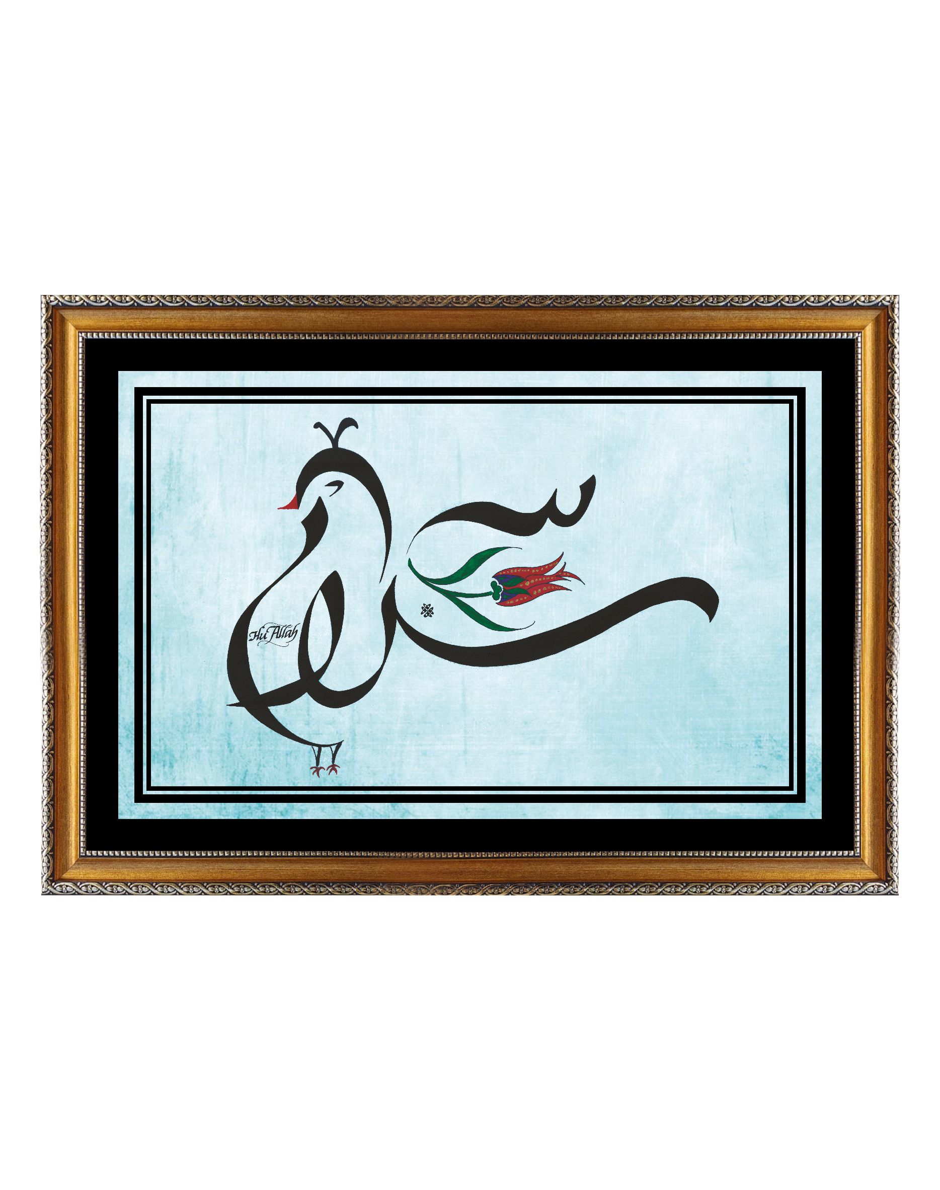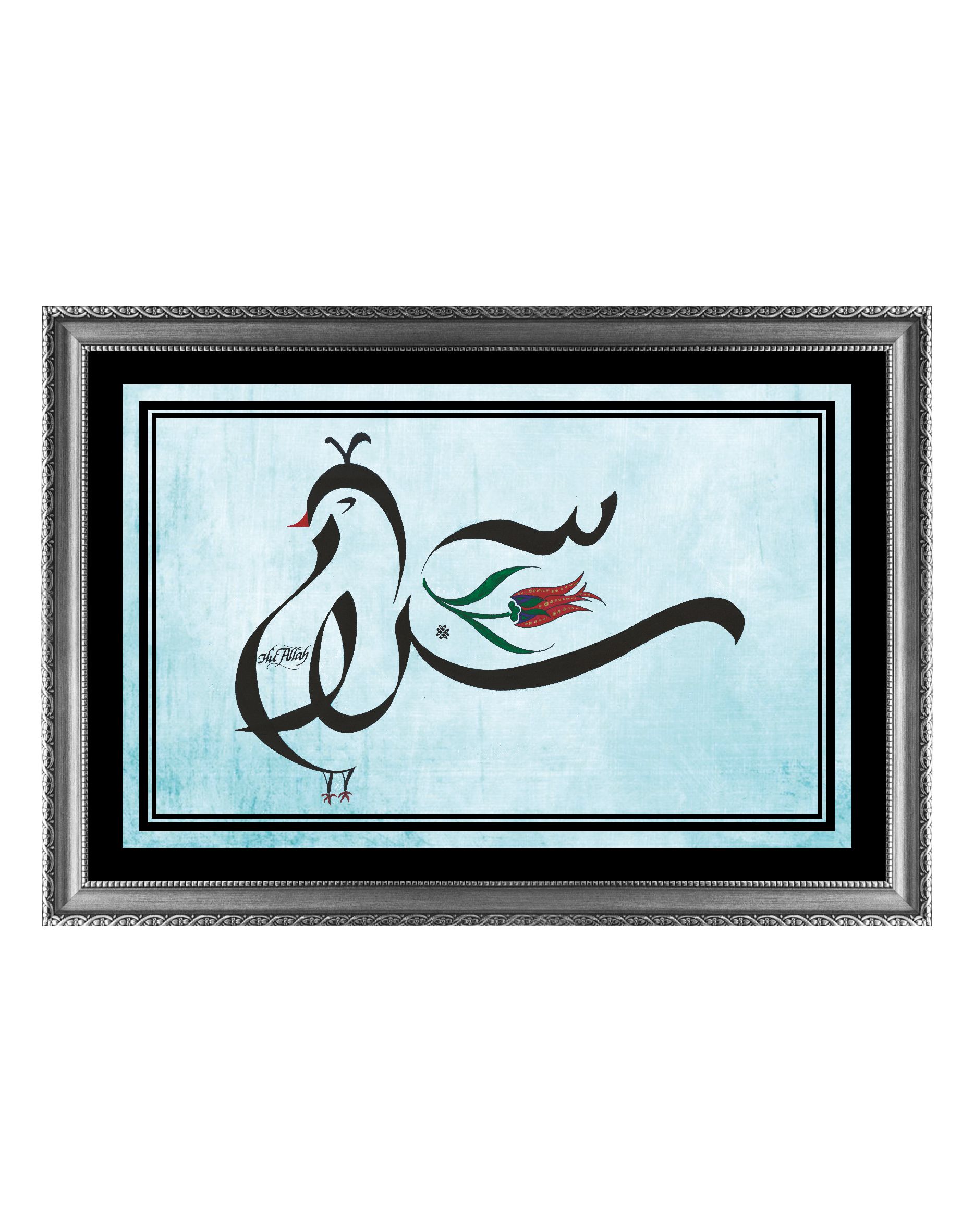 Kuş görselinde Arapça “Hu Allah”. Gövde kısmına lale çizilerek tasarlandı.