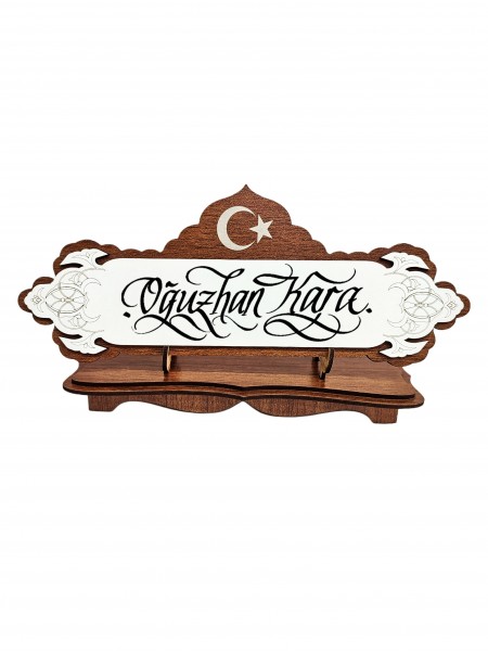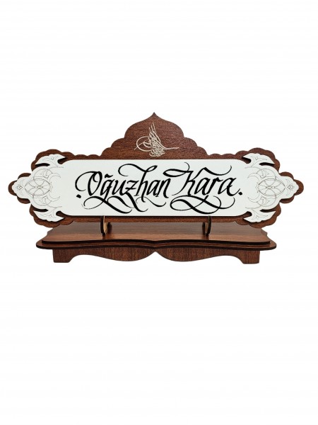 Tuğralı Ahşap Masa İsimlik 13x28 (M25)