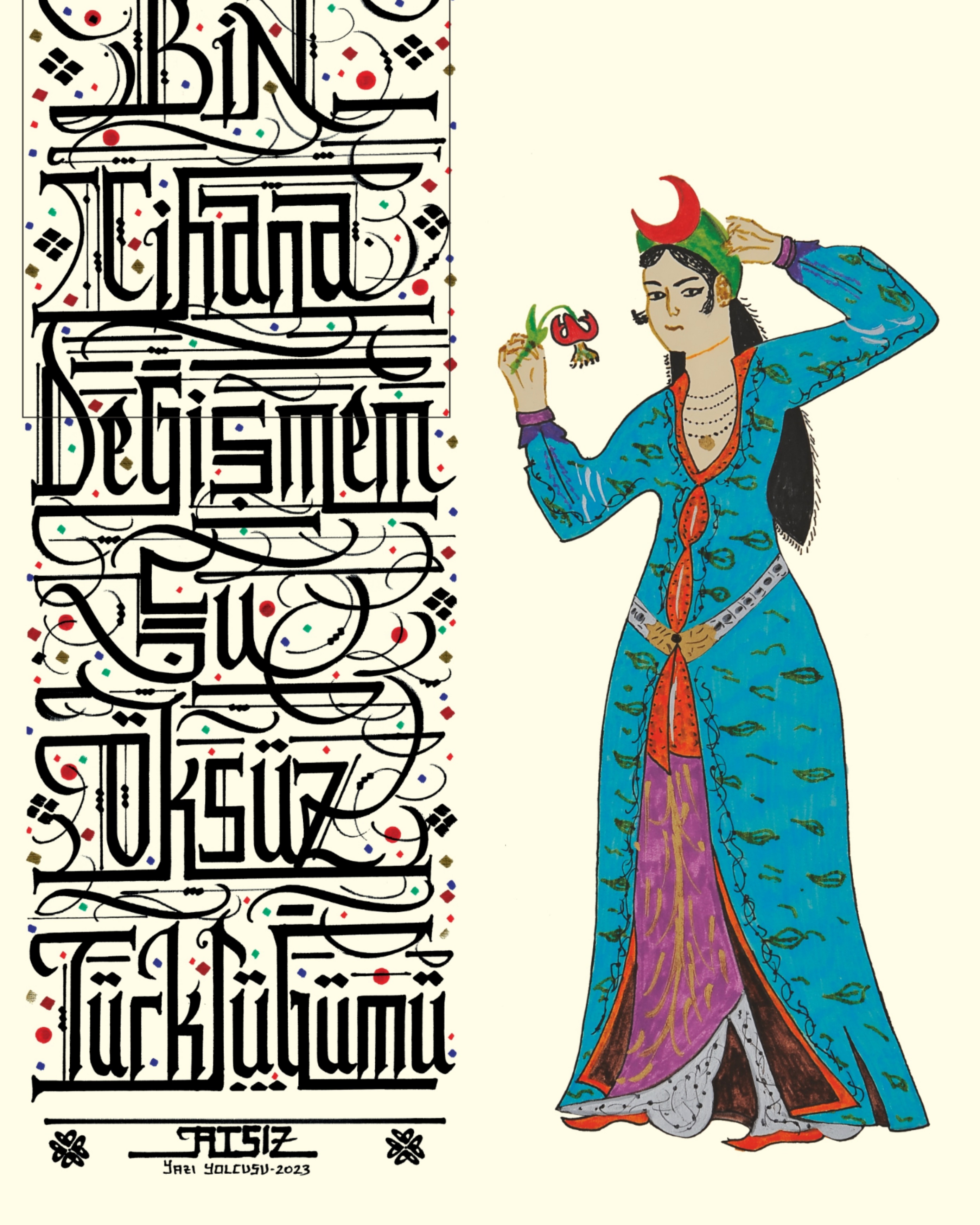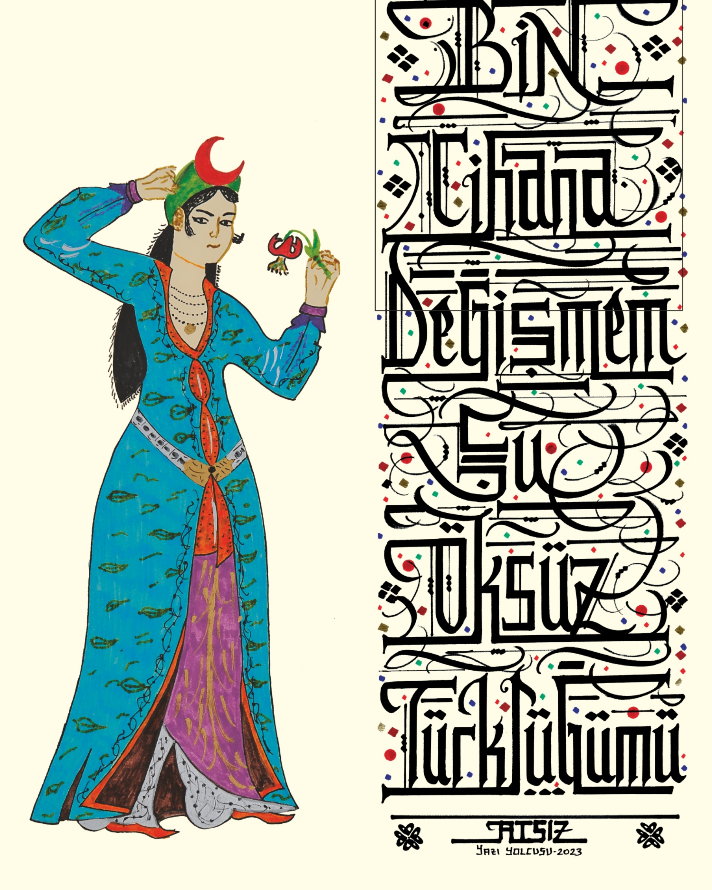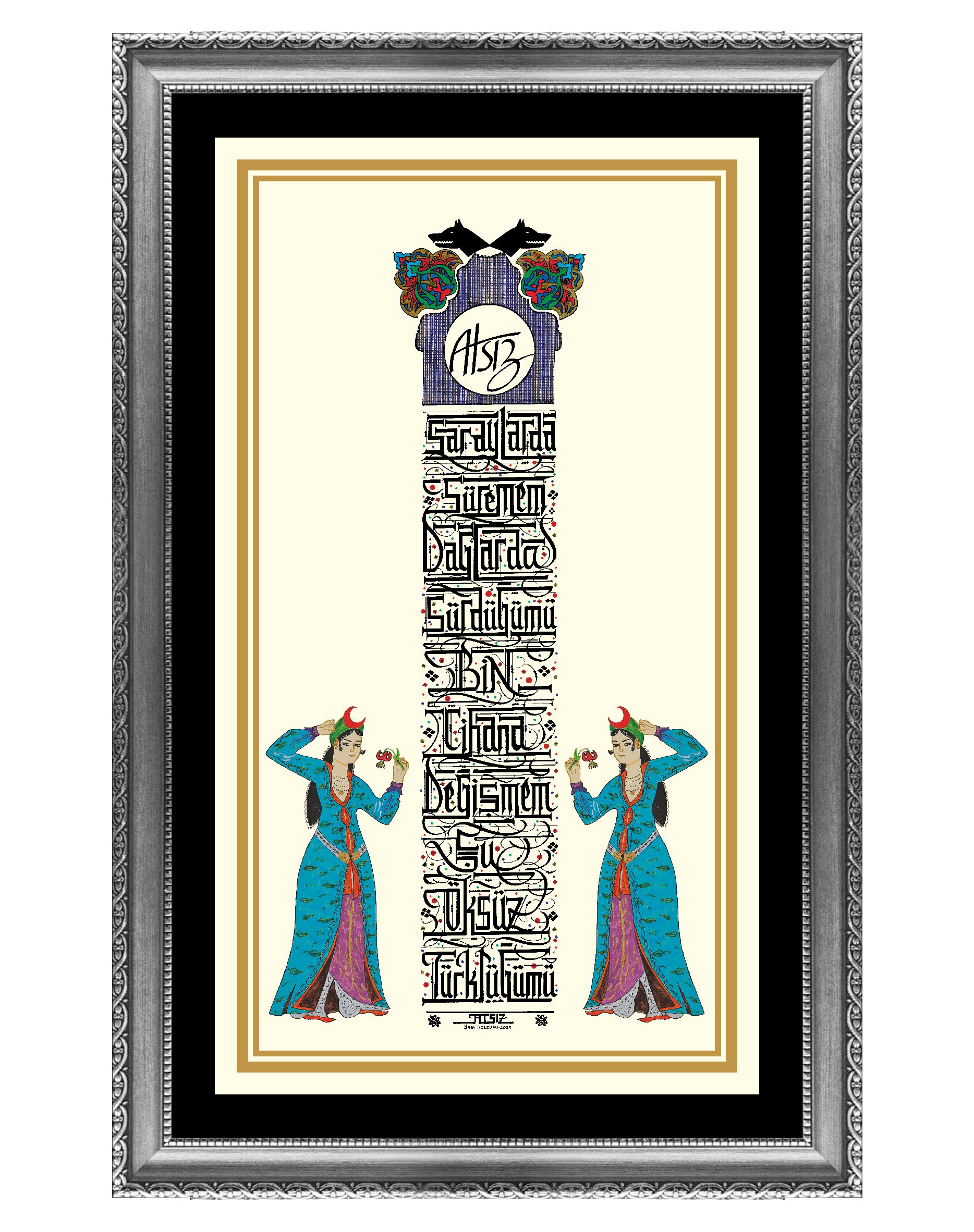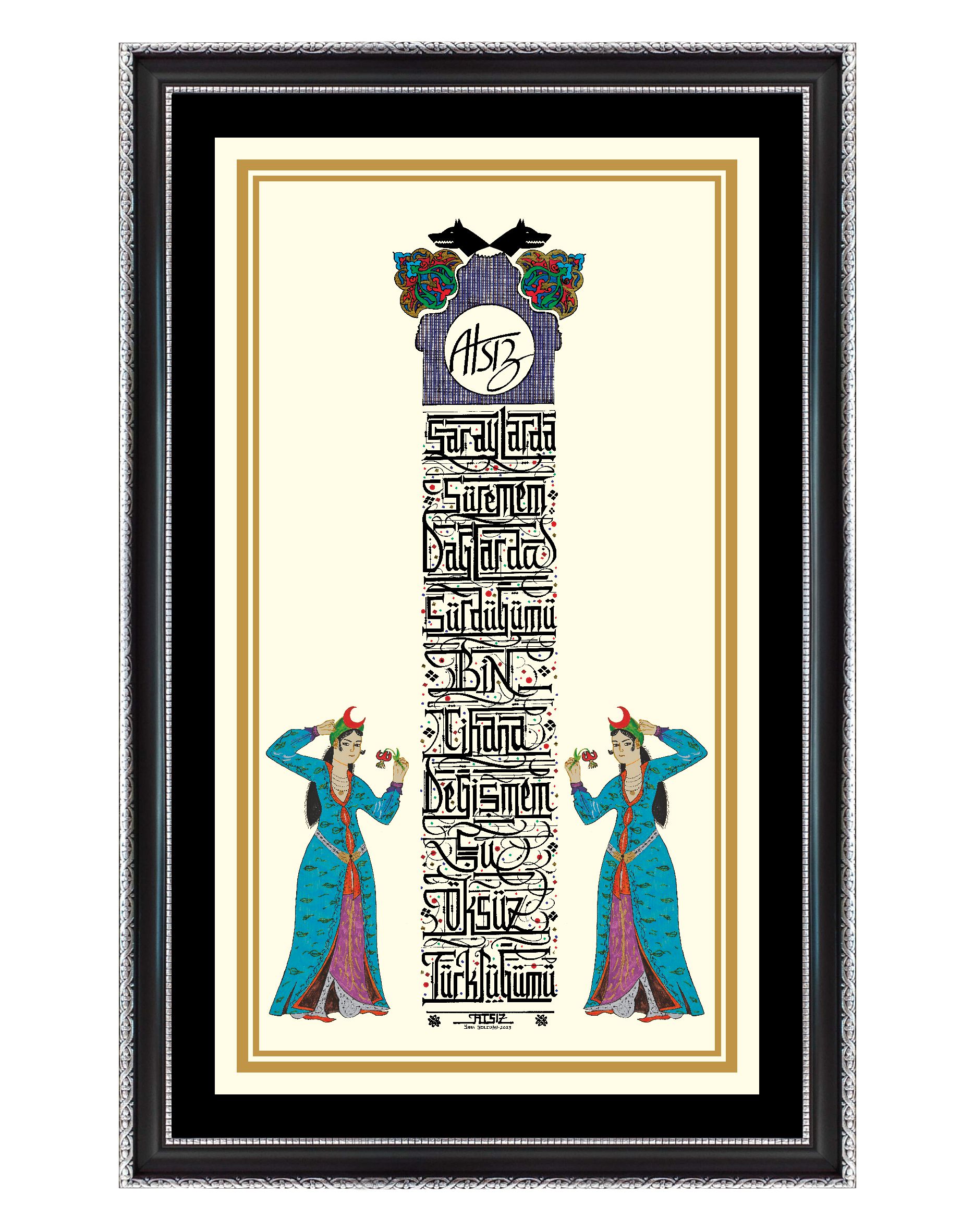 İç ölçü 48x28 cm. Camlı çerçeveli. Yüksek çözünürlükte tıpkıbasım. 2023 yılına ait Yazı Yolcusu özgün eserler koleksiyonundan sertifikalı. Gümüş, sarı ve siyah renk seçenekli çerçeve modelini lütfen belirtiniz. Fiyatlarımıza kargo ücreti ve %20 KDV tutarı dahildir.