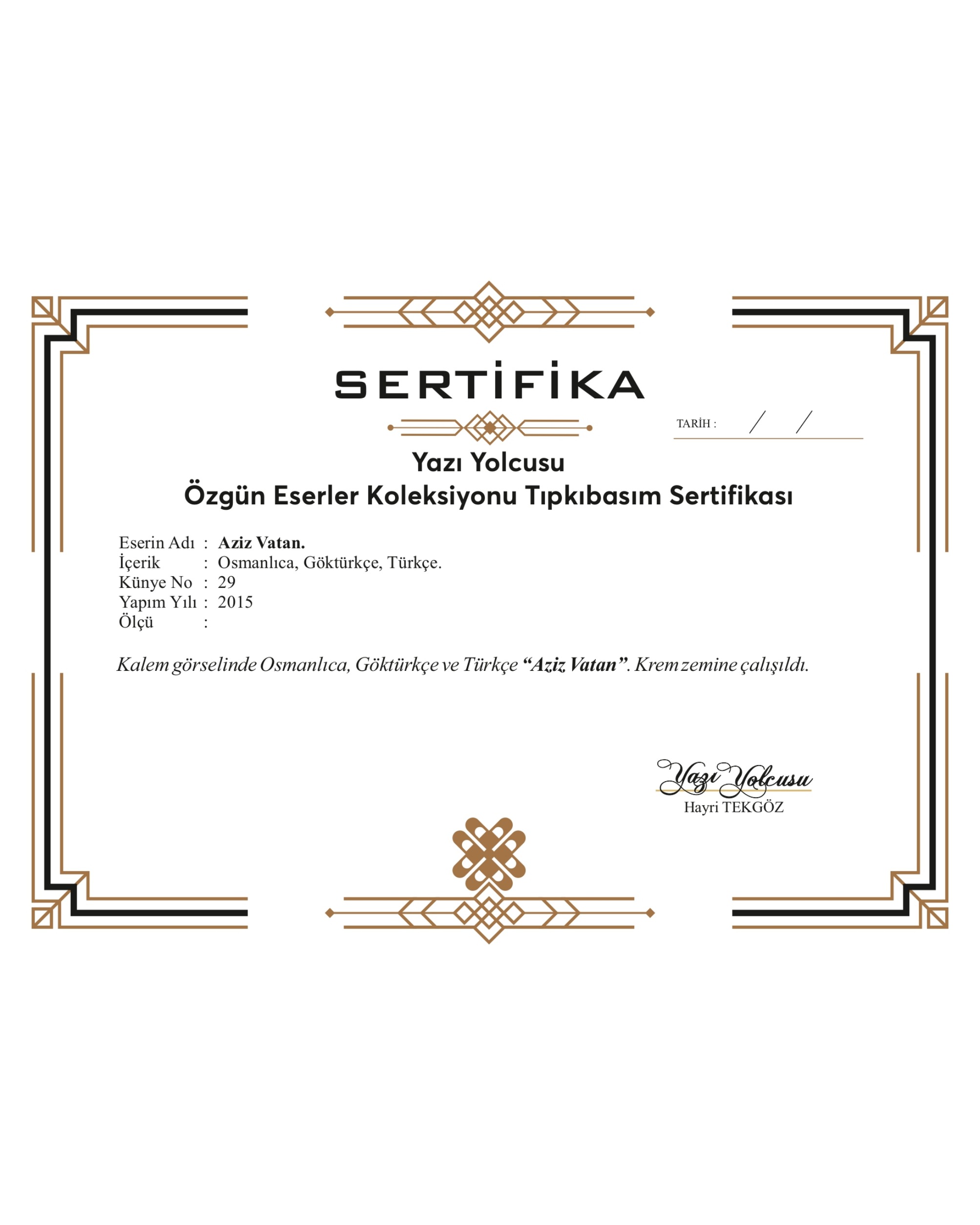 İmzalı ve Sertifikalı.