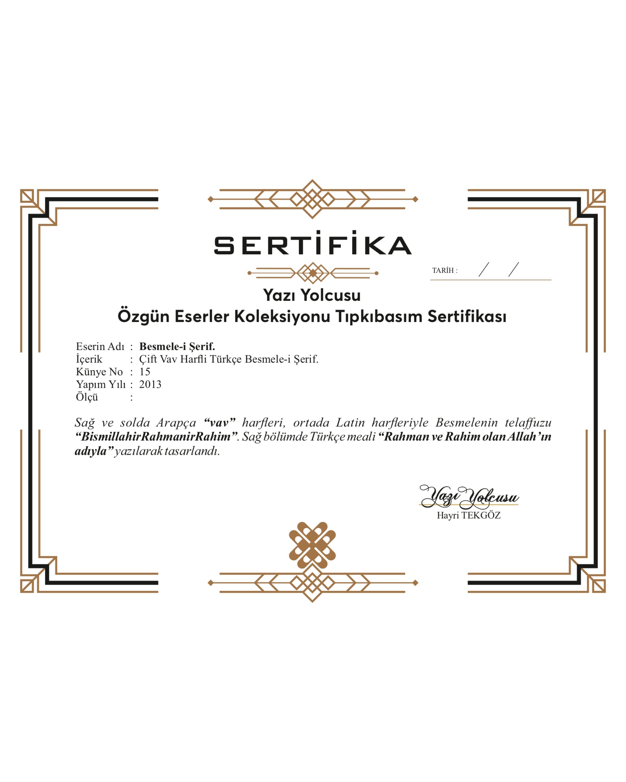 İmzalı ve Sertifikalı.