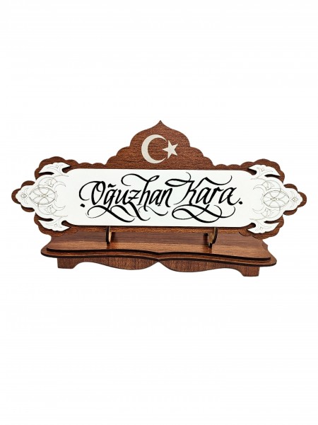 Tuğralı Ahşap Masa İsimlik 13x28 (M25)